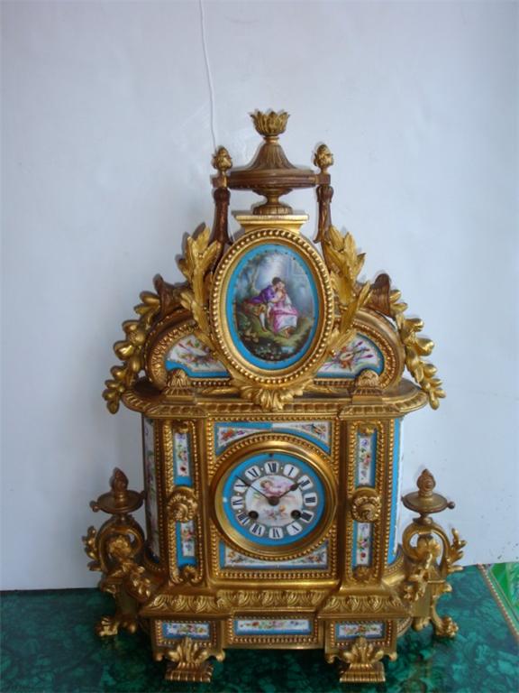 19TH C ORMOLU MOUNTED SEVRES MANTEL JAPY FRERES CLOCK