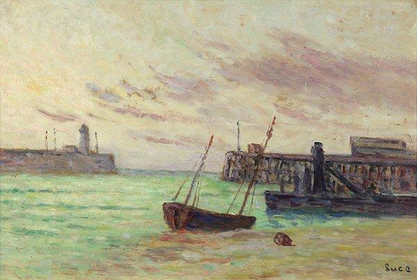 An Outstanding Beautiful RARE OLD MASTER 19th Century Painting by Maximilien Luce (1858-1941) showcasing a European Port Painting. Original Galleryprice $35,000.