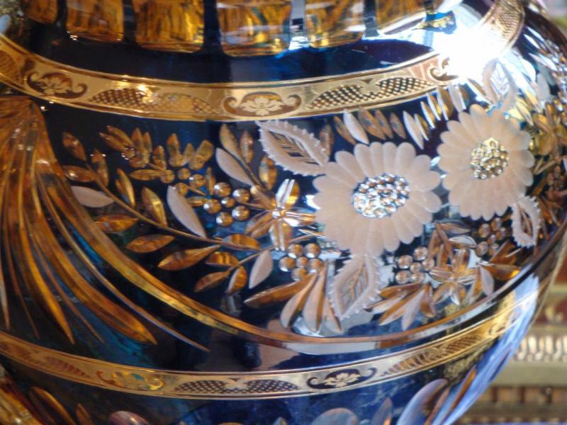 ITALIAN CUT CRYSTAL BRONZE CENTERPIECE URNS